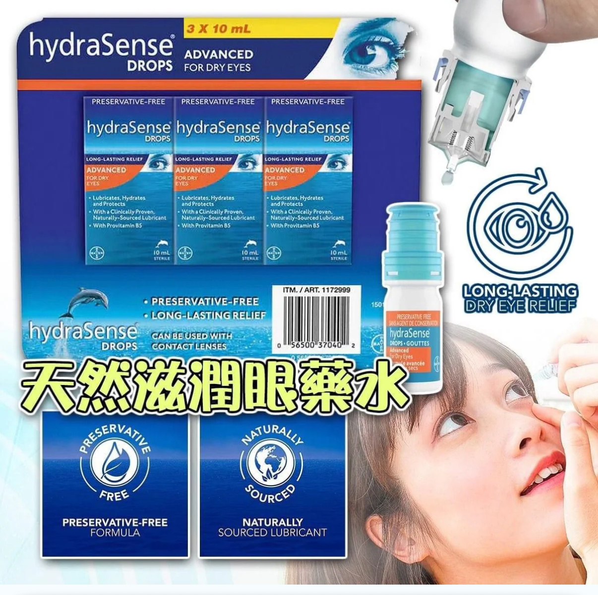 加拿大直送快閃 HydraSense Advanced 無防腐劑眼藥水10ml x3