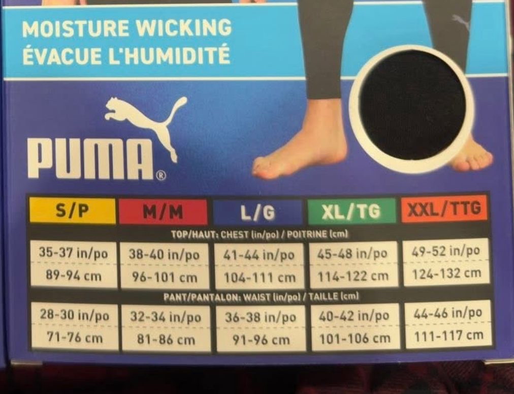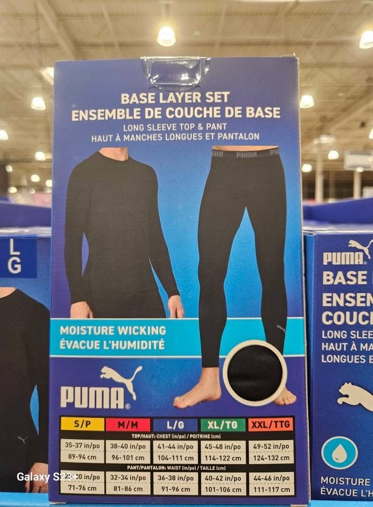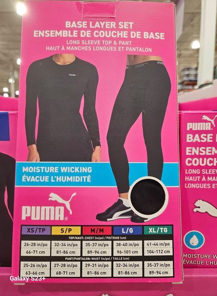 加拿大直送 🔥COSTCO 本週特價🔥 PUMA A/男士保暖上下身套裝 B/女士上下保暖身套裝 Puma 黑色底層衣褲組。 * 採用吸濕排汗技術。 * 材質為聚酯纖維和彈性纖維混紡。 * 提供貼身剪裁,有助於活動自如。 * 適合在寒冷天氣下進行高爾夫、跑步、健身等各種活動時穿著. 📐尺寸 🔗歡迎網上落單 📆10/12 截 📆20/12 到 💰$215 💰10以上$210