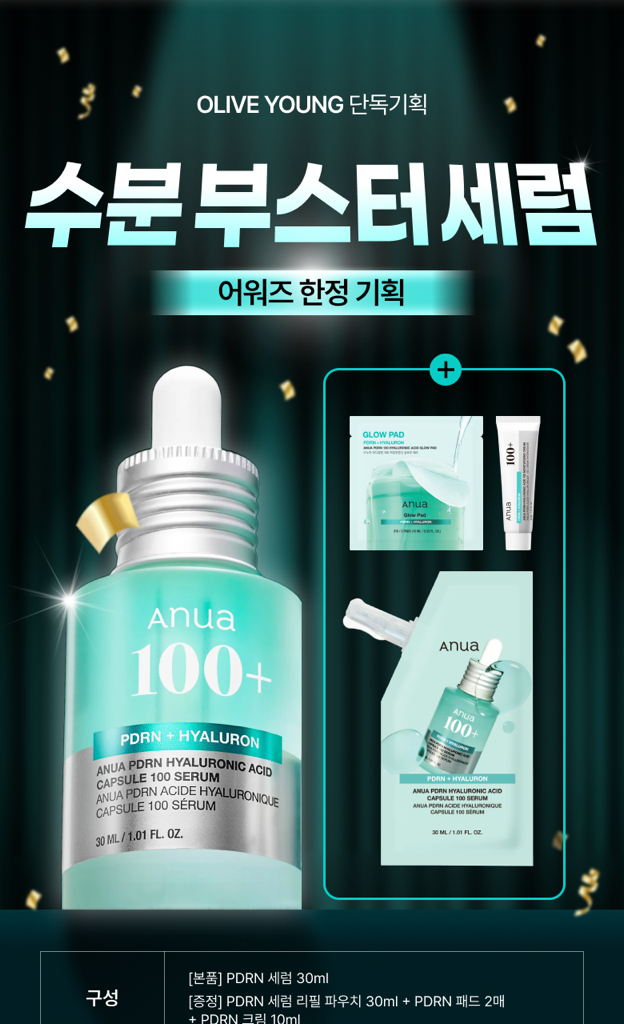 快閃韓國直送特價中 明天6:00截單 【2025 獎品】Anua PDRN 玻尿酸膠囊精華液 30ml(+補充裝 30ml + 乳霜 10ml + 2棉片)
