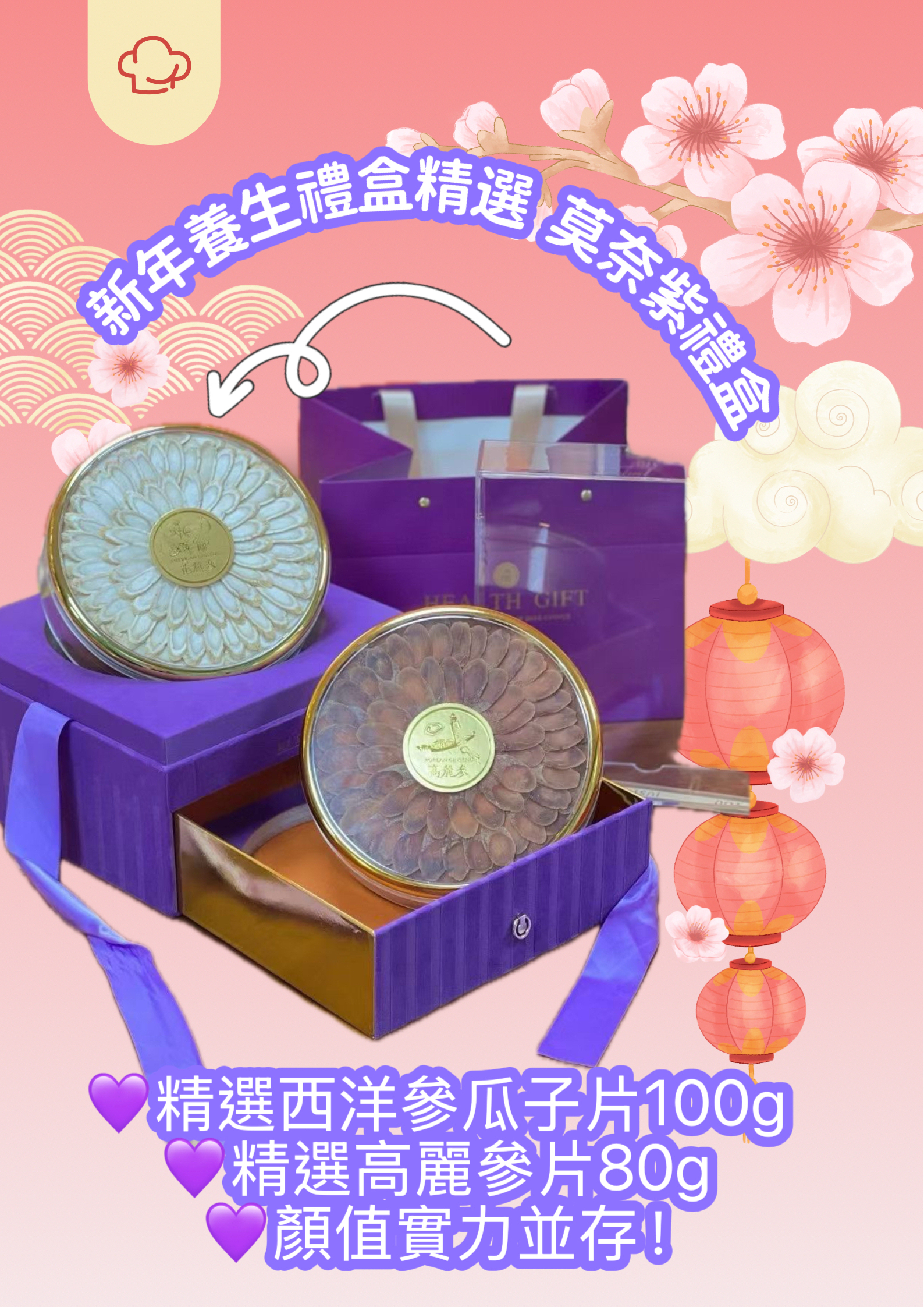 新年禮盒養生禮盒精選 莫奈紫禮盒 超級靚嘅紫色套裝,新年送禮大方得體 今年來點不一樣的養生禮盒作為新年禮盒 佢嘅包裝真係非常靚仔,仲附上紙袋送禮冇難度 🔗歡迎網站落單 💟 莫奈的浪漫花園║莫奈紫雙層伴手禮 💜精選西洋參瓜子片100g 💜精選高麗參片80g 💜顏值實力並存! 📆21/1截 📆2月初到 💰$230 💰10以上$220