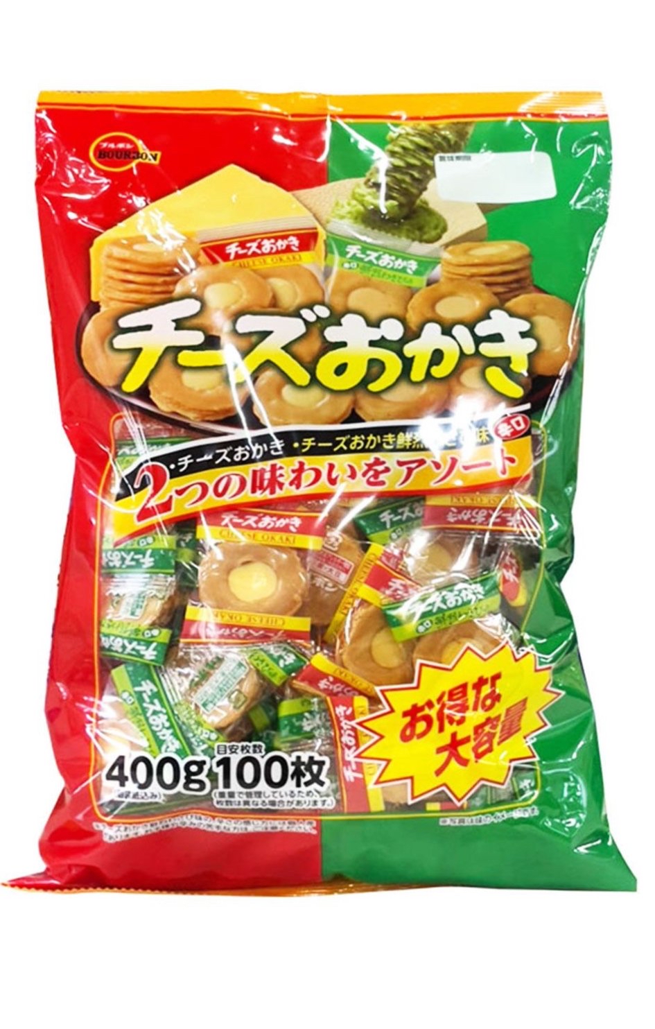 日本代購Round 1 大阪 Costco代購百邦日本Costco直送 日版Bourbon 2款芝士夾心 原味及芥末味 Okaki小米菓 餡餅 超值家庭裝(400g)