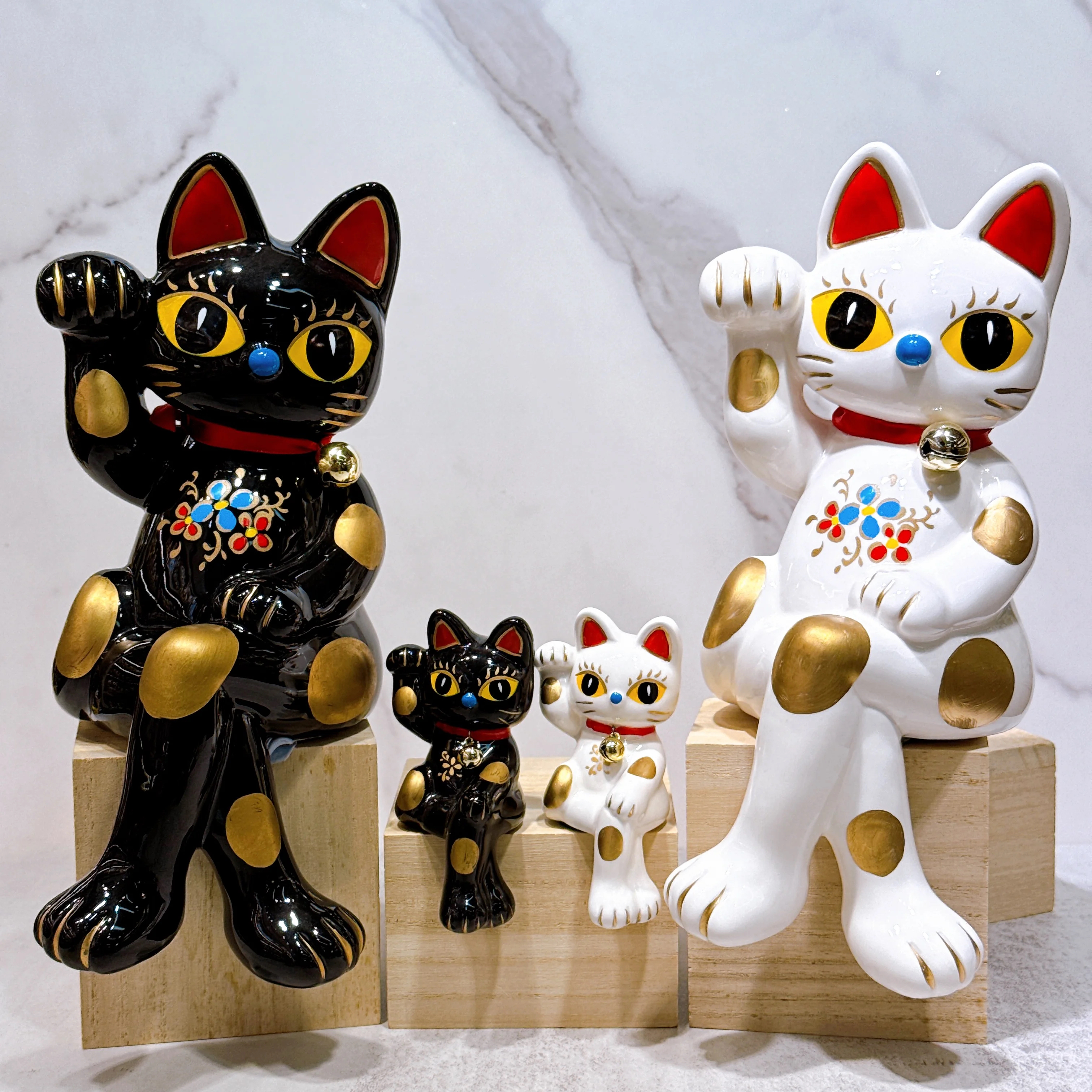 型爆橋腳招財貓,黑白雙色大號小號齊全,猶如一顆閃耀的福星✨!它們優雅地坐著,等著為你招來滿滿財富💰。小號版本溫文爾雅又可愛,成為擺放在家中或辦公室每個角落的最佳開運小物🍀