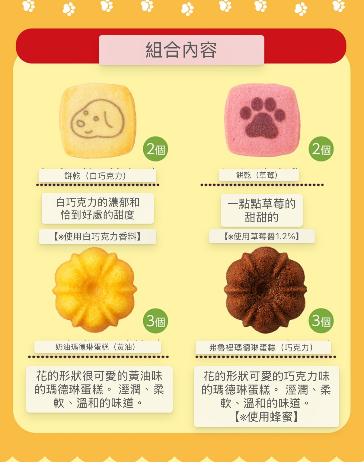 日本直送銀座 最新款小貓小狗可愛包包朱古力曲奇餅禮品包 雙面款式 小貓袋(10個裝)朱古力曲奇餅 在用毛線玩耍、嬉戲、盡情享受的5種小貓的可愛插圖設計的小貓小袋裡,搭配了瑪德琳和餅乾。 質地溼潤的合成皮革小袋,拉鍊的拉手部分是以小貓薩佈雷為主題的吊飾。 瑪德琳的膠片設計有5種。 ■內容量:餅乾4個,巧克力黃油各3個 共10個 ■附件:附帶禮品袋 ※此商品附帶禮品袋。 ■尺寸:220mm×65mm×H160mm 小狗小袋(10個裝)朱古力曲奇餅小包包 雙面款式 唯一「一」的可愛小袋裡的花形瑪德琳&餅乾 在柔和的陽光下,在充滿活力地奔跑的5種小狗的可愛插圖設計的小狗小袋裡,搭配了瑪德琳和餅乾。 溼潤質感的合成皮革小袋,拉鍊的拉手部分是以小狗薩佈雷為主題的吊飾。 瑪德琳的膠片設計有5種。 因為是隨機的,所以能遇到哪隻小狗,請開啟看看♪ 內容量・尺寸 ■內容量:餅乾4個,巧克力黃油各3個 共10個 ■附件:附帶禮品袋 ※此商品附帶禮品袋。 ■尺寸:220mm×65mm×H160mm 📆15/1截 📆5/2 💰批$110 💰10以上$105