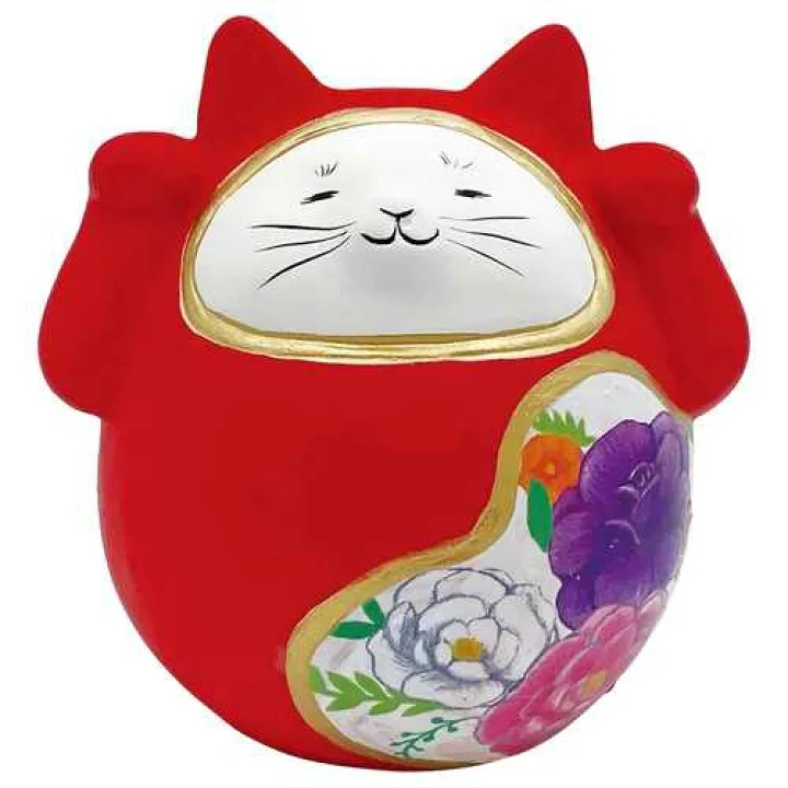 日本 貓雜貨 花柄招財貓達摩