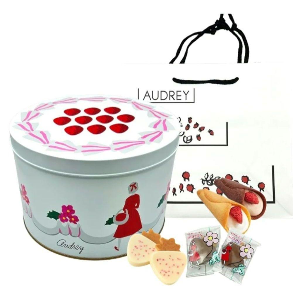 日本直送 聖誕限定,每年爆款 Audrey 聖誕限定白色禮盒15入大罐 🔗歡迎網站落單 ❤️AUDREY最招牌的商品就是這個「Gracia 草莓花束」把餅乾捲起來像是花束的模樣,裡面除了奶油之外還點綴了草莓乾。一整束包起來,就像是花束一樣超好看,送禮也很有面子!以紀念日花束當作靈感,所以每到情人節前夕,「AUDREY」的人氣更是高得不得了呢~ 一款外觀精美鐵盒Audrey廣受歡迎的烘焙食品組合。 🌸**令人愉悅的禮物,就像送上一束草莓。 ** 一份飽含心意的禮物,送給特別的人。 【產品概述】 一個受歡迎的草莓糖果品牌, 隆重介紹一款精美禮品,內含裝在可愛巧克力蛋糕圖案鐵盒中的糖果。 這是一個令人興奮的組合,打開它的那一刻,它就會用迷人的香氣和色彩充滿你的心。 無論是作為禮物、回禮,或是犒賞自己,都是完美之選。 【推薦作為禮物】 這款優雅的白色罐身印有一位身穿紅色連身裙的女孩的精美圖案。 它華麗優雅的設計使之成為絕佳的禮物。 也推薦作為慶祝禮物、感謝禮物或節日禮物。 【產品規格】 內容包括:15入 6塊冰河牛奶巧克力 6塊冰河巧克力 2塊Hello Berry白巧克力 1塊Hello Berry牛奶巧克力。 直徑:約17.5厘米 高度:約11.5厘米 內含:10 件(2 種類型) 最佳食用日期:自生產日期起至少一個月 儲存方法:避免陽光直射、高溫和潮濕。 品牌:Audrey 📆1/12截12pm 📆15/12左右到