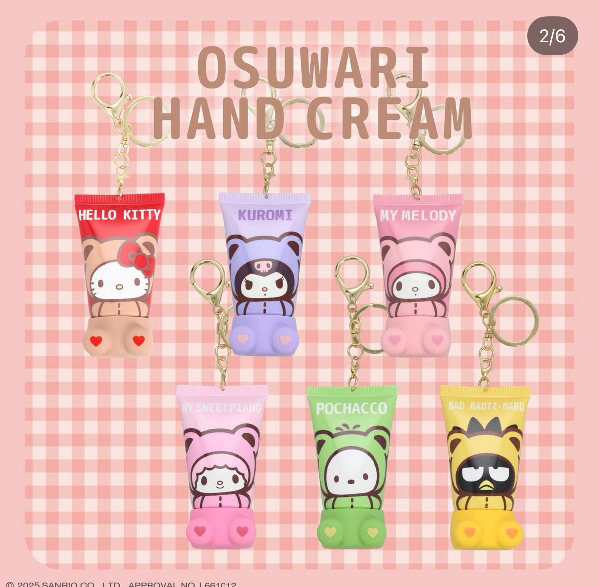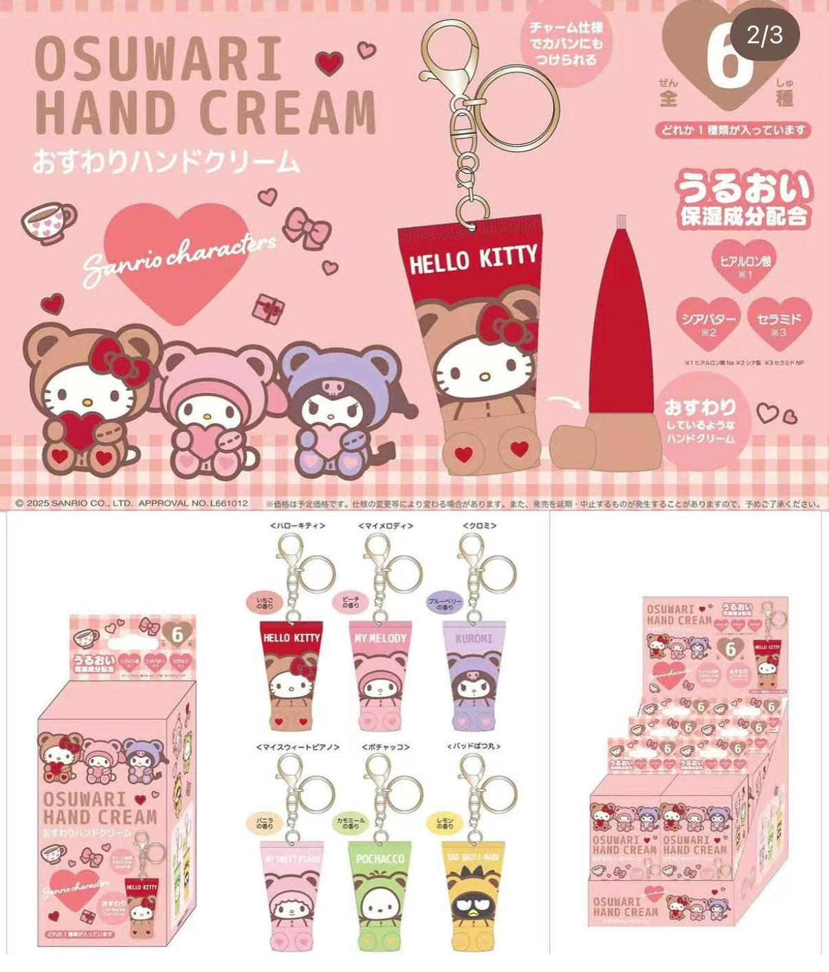 日本直送 Hand Cream Keyring Blind Box 🔗歡迎網站落單買 日本新推出實用盲盒系列 必須Hand cream 滋潤雙手 0Keyring 掛係袋夠晒方便得仲有可愛腳仔可以靚靚放係枱面!6個角色 可按系列選擇~ ✅保濕成分:透明質酸&乳木果油 ✅香味:果香/洗花香 ✅Sanrio 系列6款 📅8/12 12pm 截 📅20/12前到 💰批$85 ⭕️建議零售價$115