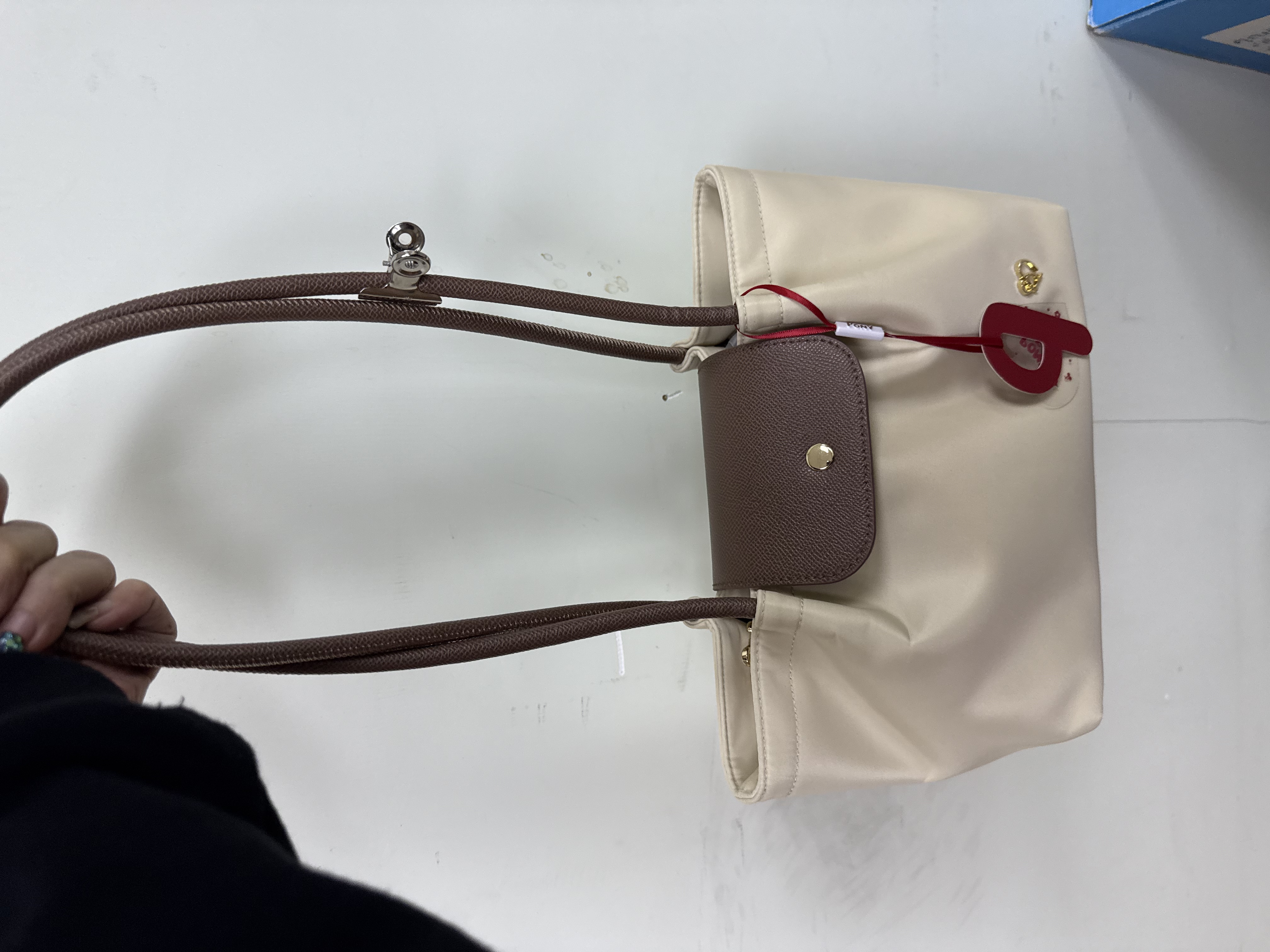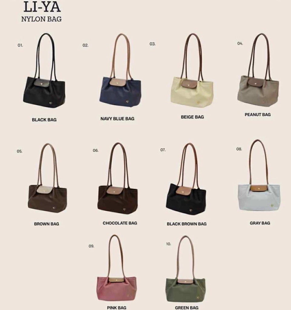 泰國大熱Pony Twenty Eight28 Liya 手袋設計特色為法式輪廓、馬鞍翻蓋設計、金屬愛心 Logo 與拉鍊吊飾、配合長柄設計。主要材質 尼龍(輕盈、具防潑水功能)與 PU 皮革拼接。