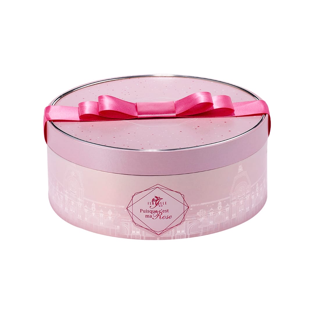 精心打造的禮盒,特別將浪漫的氛圍融入在內。有別於市面上看到的方形禮盒,特以圓柱形盒子配以別出心裁的絲帶蝴蝶結,寓意著完滿、美好。