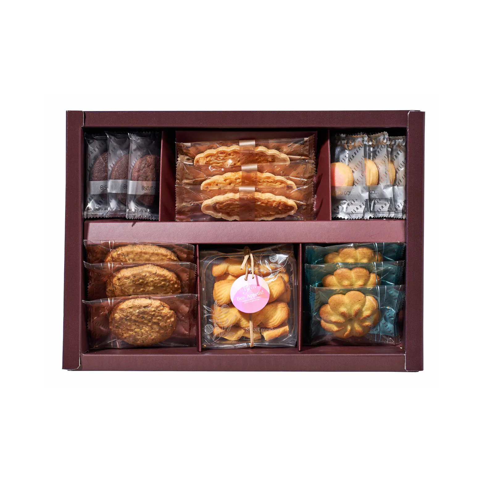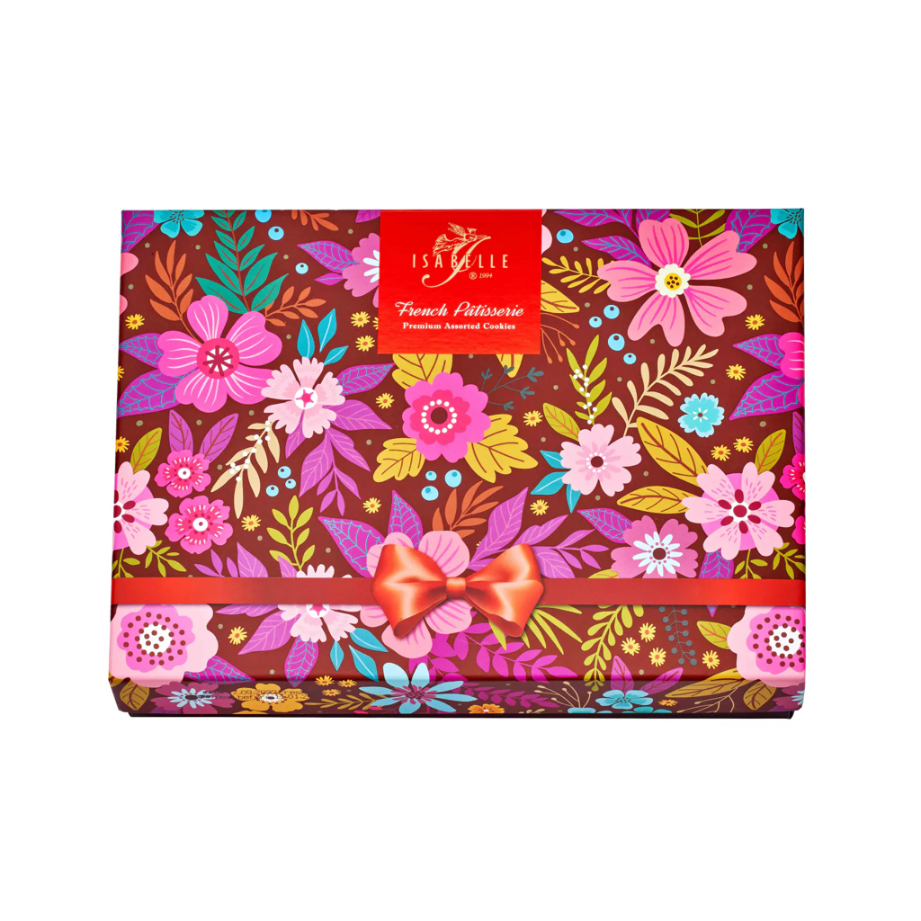 ISABELLE Natalie 曲奇禮盒 盛綻繁花鮮色奪目,設計既活躍氣氛又能為節日多添一份喜慶! 禮盒內容:紅莓紅酒曲奇 x 3, 焦糖杏仁船 x 3, 甜心牛油曲奇 x 3, 芝士棒 x 1 (9件), 錫蘭紅茶曲奇 x 3, 海苔脆曲奇 x 3 件數:16獨立小包 (24件) 尺寸:32.8 x 23.8 x 6 cm 重量:174g 📆食用日期90天 📆10/1截 📆1月尾到 📦12盒/1箱 📦箱出$$82@1 💰散出$85