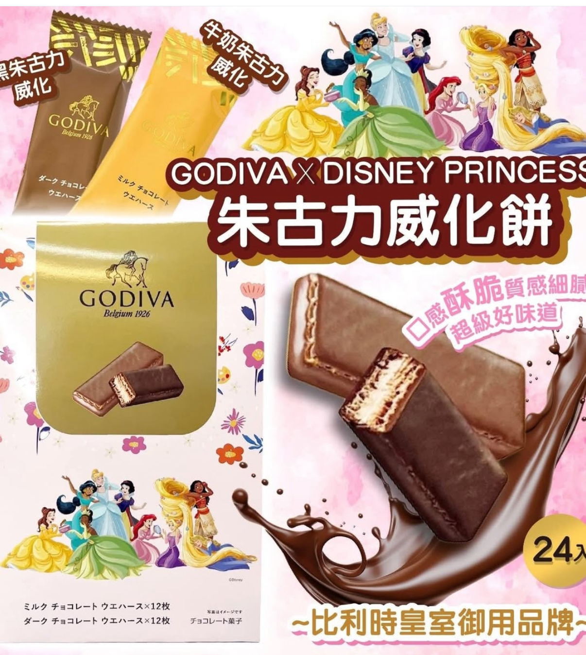 日本Costco代購 GODIVA x Disney 公主朱古力威化餅24個装