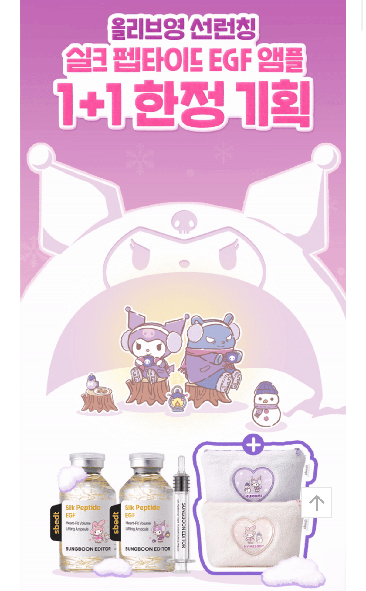 Sungboon Editor 的「Silk Peptide EGF Heart-Fit Volume Lifting Ampoule」安瓶精華液,這是一個與Sanrio 合作的特別版商品。